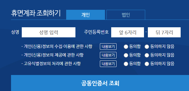 사이트 방문하여 이름과 주민등록번호 입력 후 조회