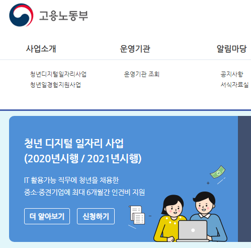 코로나 때문에 경기가 어려워지면서, 청년 취업률도 크게 떨어졌습니다. 기업에서 신규 채용도 많이 감소하였습니다. 청년들의 일자리 취업을 위해, 정부에서 IT활용가능 직무에 대하여 중소, 중견기업에 인건비 및 간접노무비를 지원해주고 했습니다.