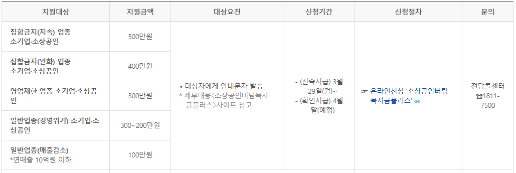 문의는 소상공인 4차지원금 신청 전담콜센터 전화 1811-7500 자세한 문의 바랍니다.