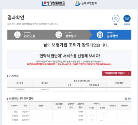 조회가 완료되면, 가입내역 결과 화면이 나옵니다.