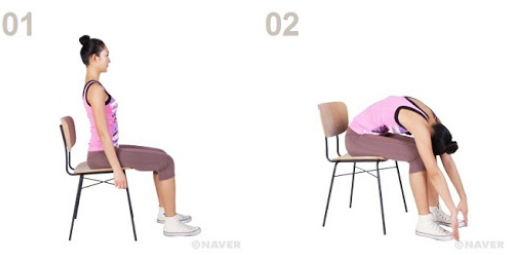 1. 의자에 앉아서 양발을 어깨 너비로 벌립니다.
