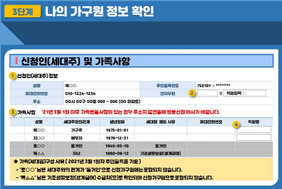 6. 신청인의 가족사항을 입력합니다.