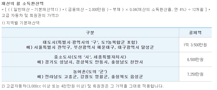 소득평가액과 재산의 소득환산액을 더한 금액이 소득인정액 입니다.